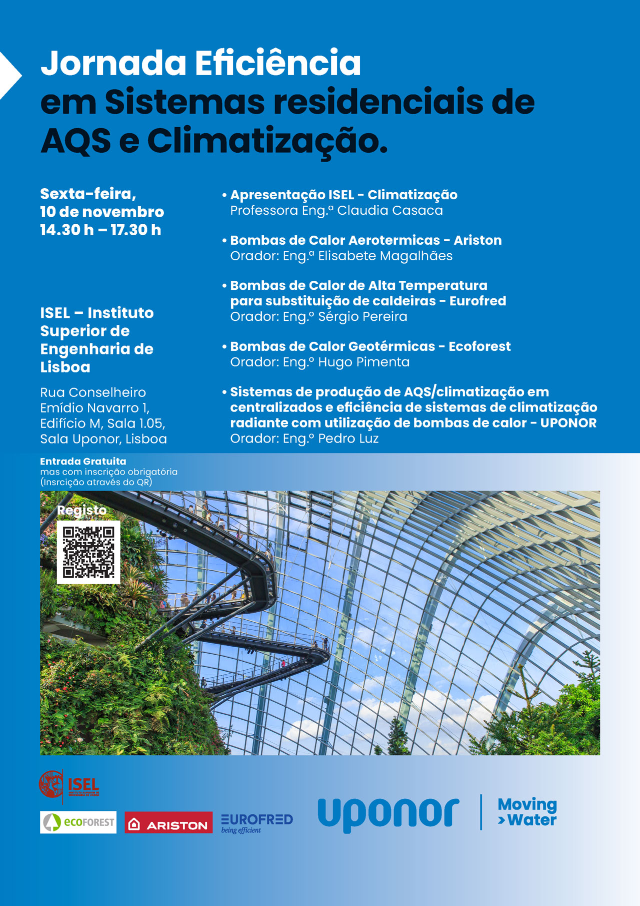 A entrada é livre, mas carece de inscrição obrigatória em: https://go.eu.uponor.com/l/901631/2023-11-03/x6fq7
