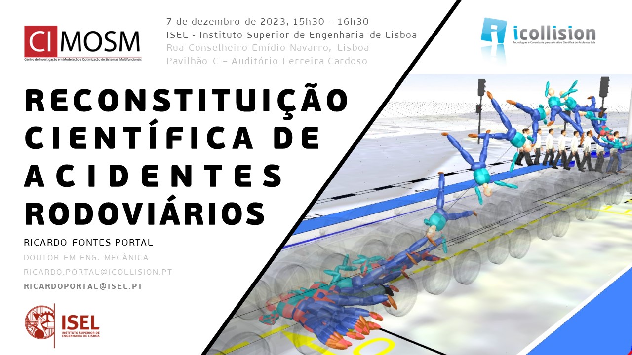 Durante este seminário, teremos a oportunidade de explorar as últimas técnicas e tecnologias utilizadas na reconstituição de acidentes, desde a recolha de dados no local até à simulação computacional. Vamos utilizar estudos reais, esperando que este seminário ofereça uma visão abrangente e esclarecedora sobre a reconstituição científica de acidentes rodoviários, destacando a importância crucial dessa disciplina para a segurança pública e para a justiça.